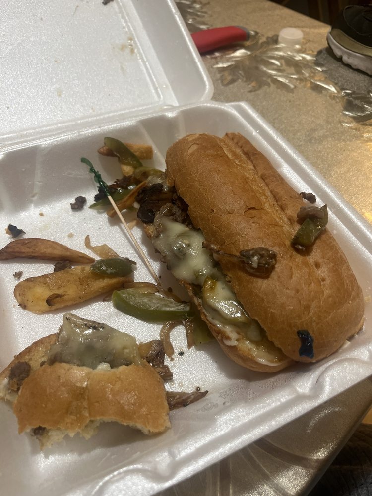 “ My husband and I loved the Philly cheesesteaks! We met the owner, Sergio, and his wife. They are the sweetest couple! The food was delicious and the friendly interactions were great. Highly recommend this place for anyone looking for a filling meal and a reasonable price! We got two Philly cheesesteaks, one with fries and the other with potato salad, and a large fountain drink to share. Total was 33. They had just enough jalapenos to give that spice, but not too many that it was distracting from the other ingredients. Come check them out! ”